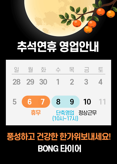 * 차량 옵션과 생산년식에 따라서 타이어 사이즈가 틀린경우가 있으니 반드시 정확한 사이즈를 확인해 주세요.